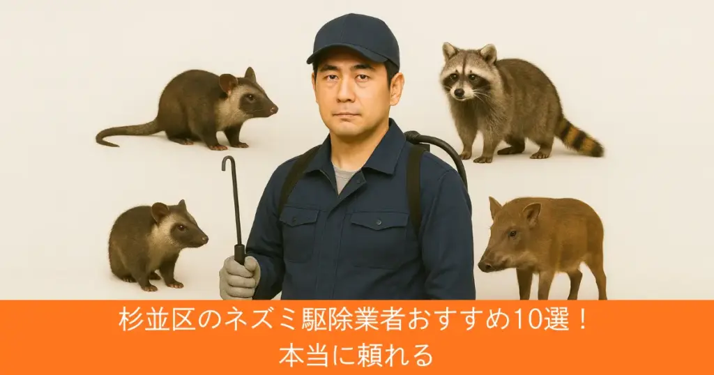 この記事では杉並区のネズミ駆除業者を紹介しています。 杉並区では、ネズミの侵入や騒音・フン害などに関する相談が増えており、害獣駆除に対応している専門会社も複数あります。 杉並区で依頼可能なネズミ駆除サービスの特徴を整理していますので、ぜひ... -